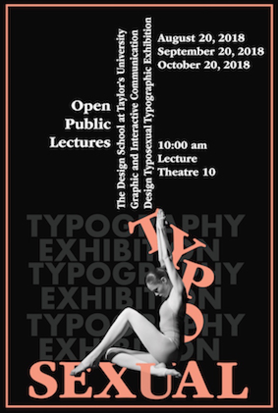 The Design School at Taylor’s University Graphic and Interactive Communication Design invites you to come and visit the Typo sexual Typographic Exhibition. Typo sexual refers to the intimacy between the designer and their artwork. We wish to invite you to come and witness the work our students have designed and come observe the intimacy they sahre with their artworks.